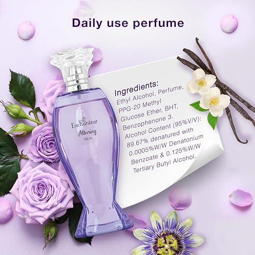 Grace the occasion with Enchanteur Alluring Daily Wear Perfume. A captivating fragrance that bonds tantalizing Bergamot and Passion Fruit with a thrill of Rose and Iris, enhanced with rich Vanilla. Explore your true aura and enjoy all the attention.