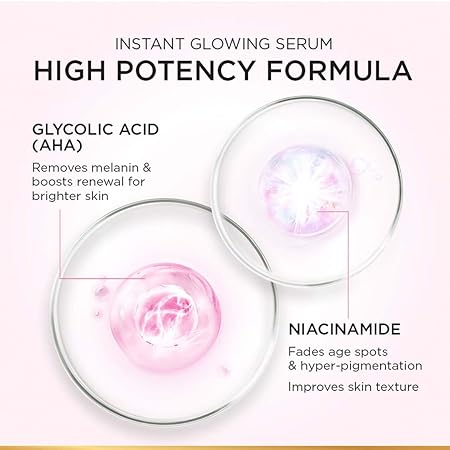 Introducing the champion of dark spots and brightening, the all-new L’Oréal Paris 1% Glycolic Bright Serum. As we age, the skin’s natural ability to renew cells reduces. This in turn causes an increase in melanin production and build up leading to dark spots and dullness. The L’Oréal Glycolic acid serum for dark skin penetrates deep into the skin, stimulates cell renewal, and evens out the basal layer of skin where melanin starts to build up. This serum for uneven skin helps to improve three dimensions of even-toned skin which makes it the best serum for pigmentation and dark spots. It is highly effective, great for daily use and clinically proven to remove five years of dark spots in just two weeks. Dermatologically tested and suitable for all skin types. So, what are you waiting for? Include the L’Oréal Paris dark spot removal serum into your skincare routine right away to reveal radiant and glowing skin at home.