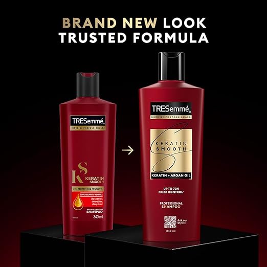 Revitalize your hair with TRESemmé Keratin Smooth Shampoo. Infused with lightweight Moroccan argan oil, this professional shampoo nourishes each strand of your hair, making it silky smooth, and easier to manage. With its dual action, TRESemmé shampoo helps you get up to 100% softer hair with more shine. This no-sulfate shampoo formula with patented micro-moisture technology smoothens and protects dry hair from damage, ensuring long-lasting results. When used together with the TRESemmé Keratin Smooth Conditioner, this nourishing shampoo for women can control frizz for as long as up to 3 days. Recommended by professionals, the keratin shampoo is specially formulated for Indian hair and is suitable for both naturally and chemically treated hair. It is also ideal for use in conjunction with any oil treatments. Now, get visibly straighter, smoother hair that is easier to style hair. Buy now to enjoy gorgeous, silky hair every day without the salon price tag! Get salon-quality hair at home with TRESemmé Keratin Smooth Shampoo. To use: Apply shampoo to wet hair and gently massage to work into a lather. Rinse hair thoroughly. Follow with the TRESemmé Keratin Smooth conditioner for an extra boost of smoothness.