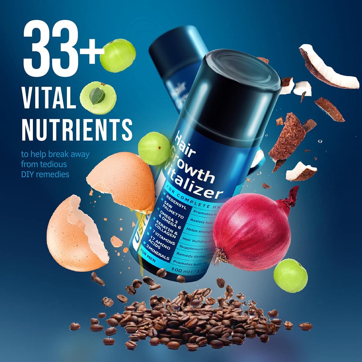 USTRAA Hair Growth Vitalizer – 100ml – Boost hair growth, Prevents hair fall, Delays Hair Greying, With Redensyl and Onion Extract, Non-oily serum for complete hair care and nourishment