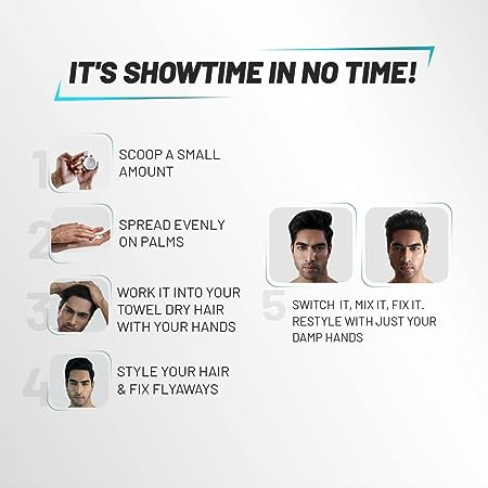- Direction to use- Scoop a small amount and spread evenly on palms, style your hair and fix flyaways. Switch it, Mix it, Fix it. Restyle with just your Damp hands.