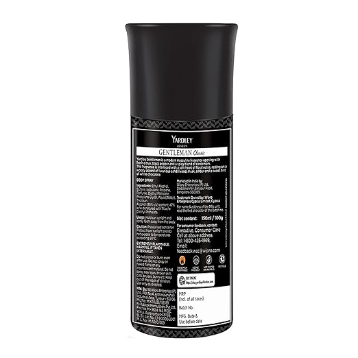Elevate your daily grooming ritual with Yardley London Gentleman Classic Deodorant Body Spray for Men, a testament to timeless sophistication and modern masculinity. Designed for the quintessential gentlemen, this range of deodorants encapsulates classic fragrances with a contemporary touch, offering you a symphony of long-lasting freshness and a hint of English charm. Yardley Gentleman Classic Deo Body Spray is a masterpiece of scent, opening with fresh notes that seamlessly intertwine with soft floral undertones, finally resting on luxurious woody accords. The complexity of this fragrance is perfectly balanced, making it an ideal choice for the accomplished and elegant man who is always on the move.Embrace a distinct fragrance that not only adorns your senses but also leaves an indelible mark on those around you. Crafted by The House of Yardley, this body spray becomes a statement of your refined taste to be worn and remembered by both men and women. Yardley London, with its legacy of over 250 years, stands as England’s most distinguished purveyor of quality perfumes and soaps. A brand synonymous with Englishness, luxury, quality, and natural fragrances, Yardley London, has been the trusted choice of the quintessential gentleman.